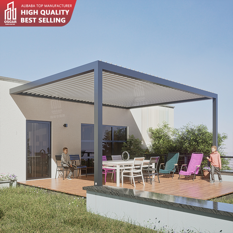This is Oscar's aluminum alloy electric louver Pavilion, which is very popular in outdoor environment.