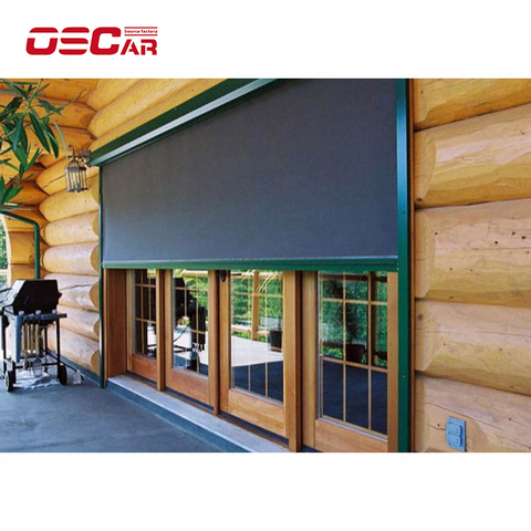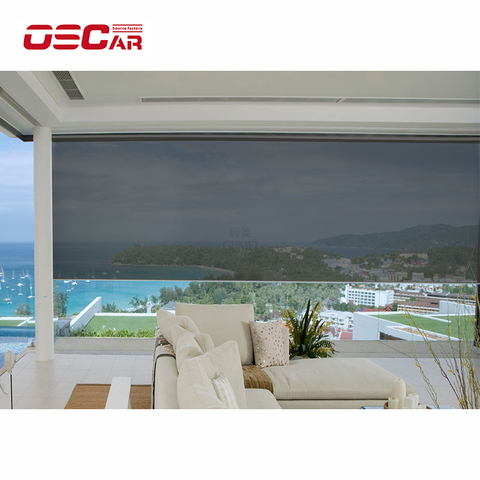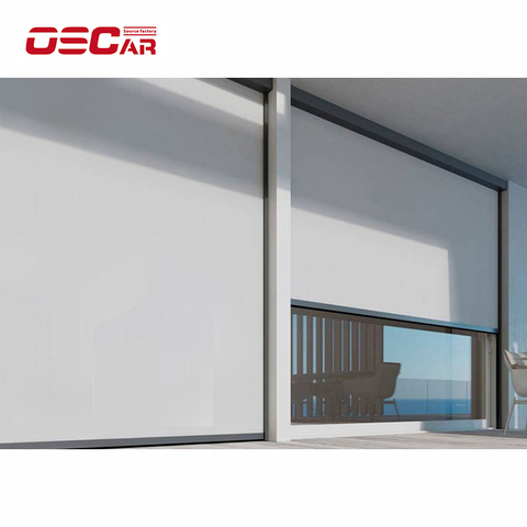 Jardín Patio a prueba de viento impermeable Auto retráctil pantallas de sombra Motor Tubular motorizado rodillo Zip Track persianas al aire libre